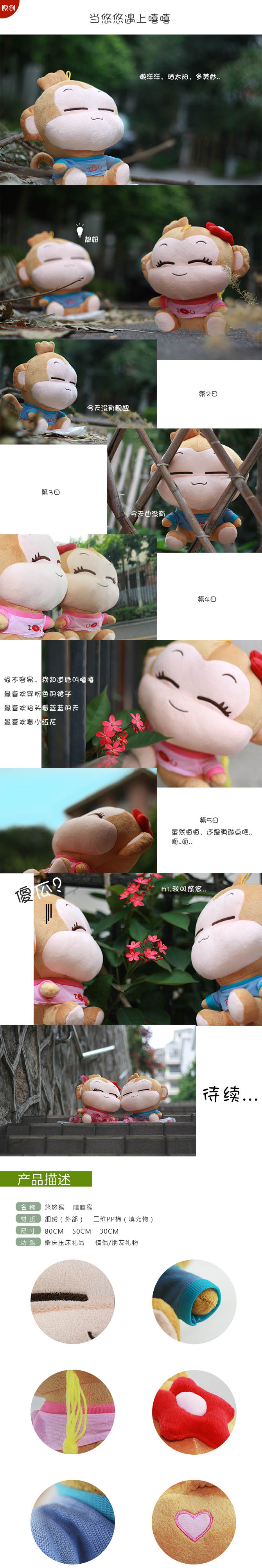 正版 可爱浪漫经典悠嘻猴 嘻哈猴 毛绒公仔玩具 (小) 体验价:¥34.00元 已售出0件 款式 悠悠(80cm) 嘻嘻(80cm) 悠悠(50cm) 嘻嘻(50cm) 悠悠(30cm) 嘻嘻(30cm) 数量: (库存量:2) 放入购物袋