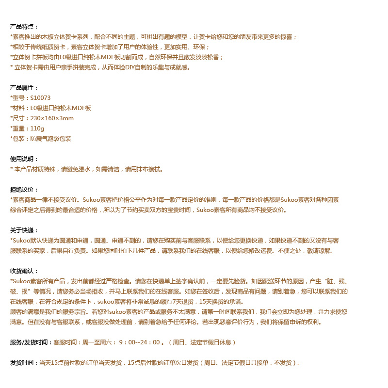Sukoo素客 创意简约DIY木制立体贺卡雪人信封贺卡