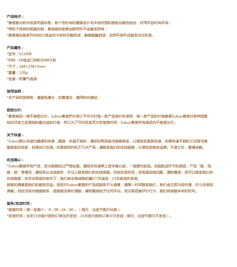 Sukoo素客 可爱创意木制简约定做超大只领钱不上班鼠标垫(大号)