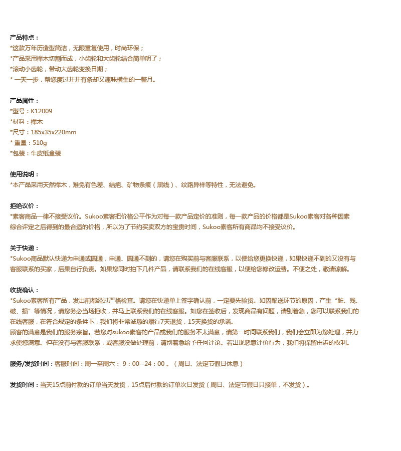 Sukoo素客 现代创意实木万年历简约环保齿轮万年历