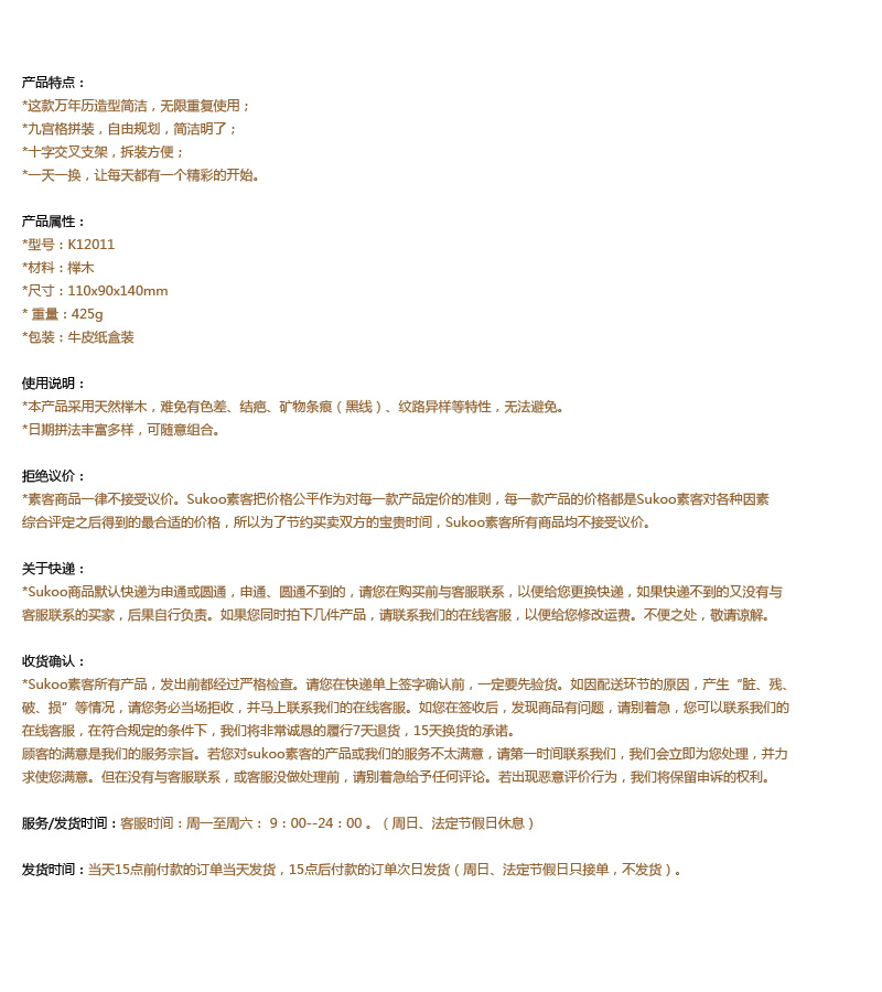 Sukoo素客 现代创意实木万年历简约环保益智万年历(基本款)