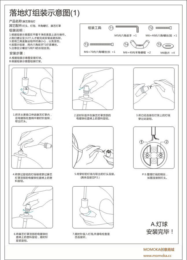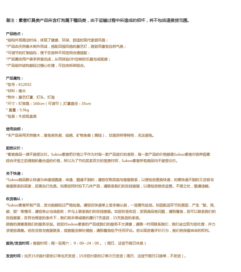 Sukoo素客 创意橡木制简约现代创意落地灯可调光藤艺落地灯