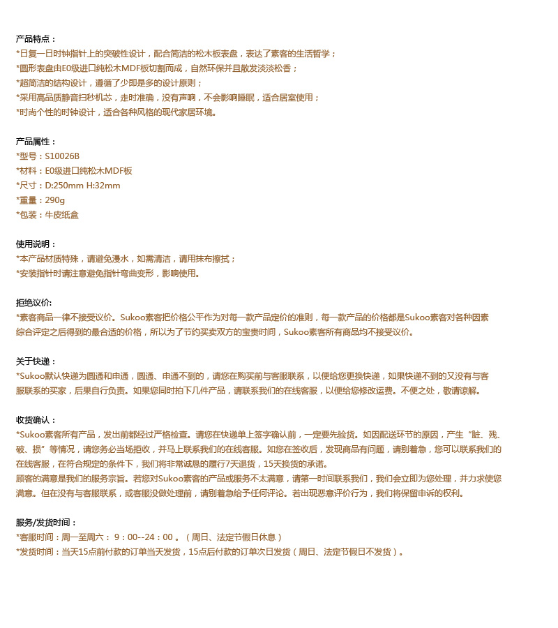 Sukoo素客 客厅创意简约木制挂钟超静音日复一日概念钟B数字款